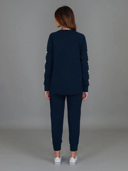 Stay cozy and stylish with the Kate Leopard Print Star Sweatshirt. It features side vents, a crew neck, long sleeves, and a hi-lo length. The playful leopard star motif adds a fun touch. Keep yourself warm and fashionable all season long. For the ultimate tracksuit set, pair with our bestselling joggers.