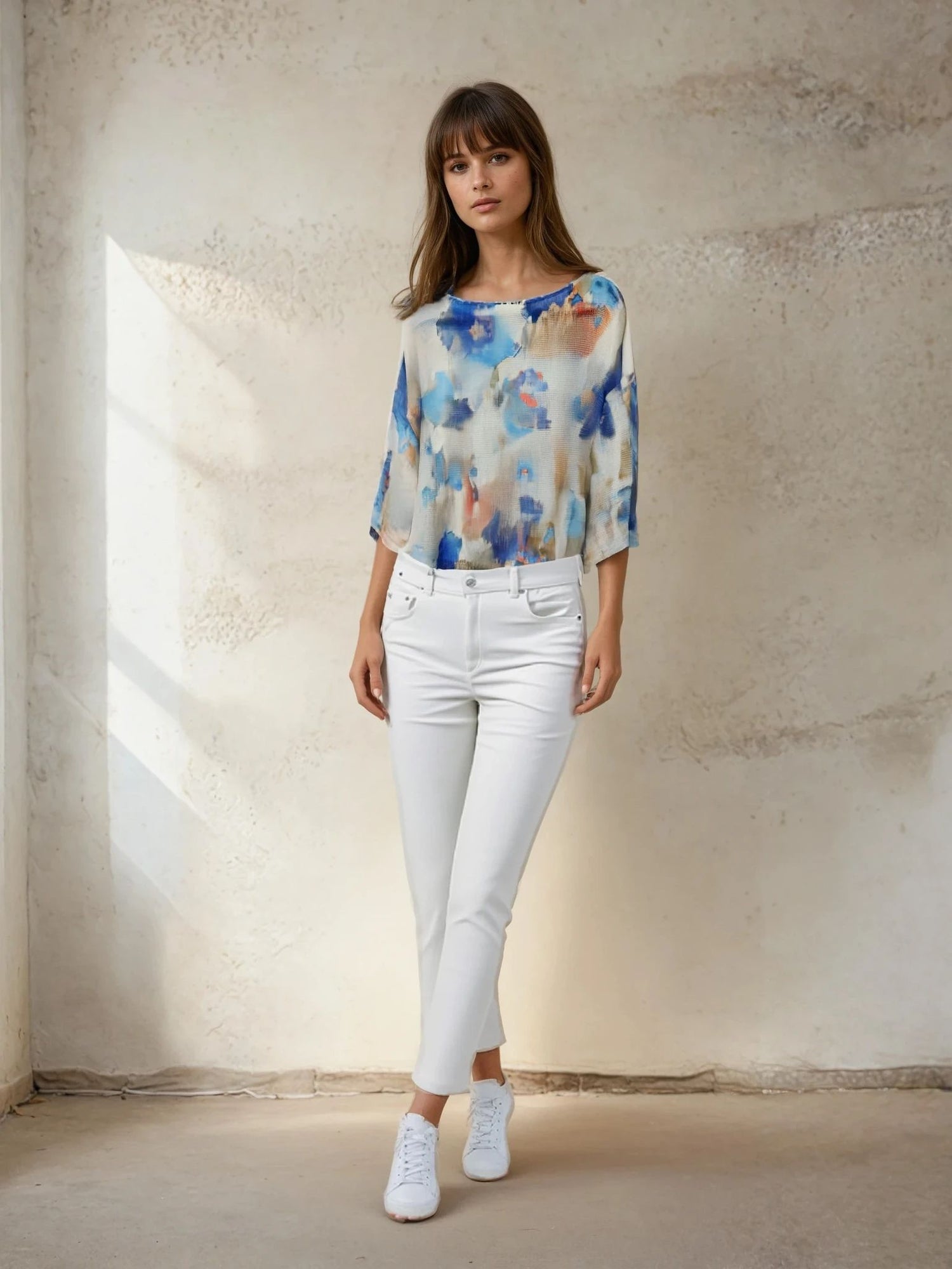 Crafted from a featherlight knit with a touch of stretch, the Emilia top features a soft drape and an all-over floral print that feels fresh yet timeless. Designed in an easy one-size fit, it’s the perfect throw-on piece for breezy days, layered looks, or weekend escapes.