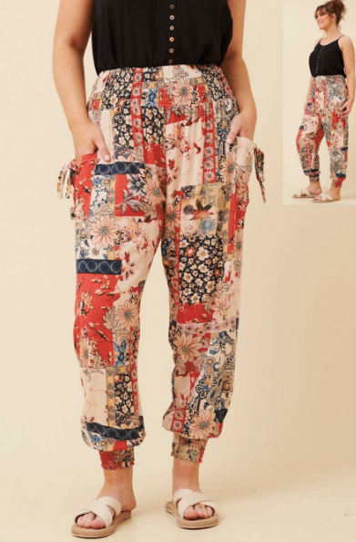 These Caroline Morgan harem pants are designed for effortless comfort and everyday style. Featuring a soft shirred elastic waistband and elasticated cuffs, they offer a relaxed, easy fit that’s perfect for transeasonal wear. Finished with functional side pockets and adjustable tie details, they combine practicality with a stylish printed design. Pair them with a simple T-shirt or tank top to complete the look.
