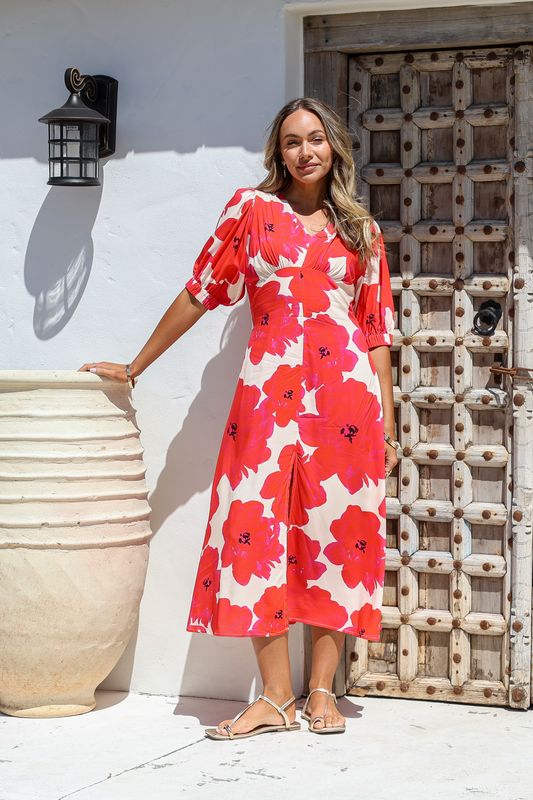 Loving this pop of colour dress by Joop & Gypsy - luxe fabric as always making this dress so easy to wear! Super flattering style that suits all body shapes, it has a v neckline with a seam on the bodice that makes it fall perfectly. We love the elastic to the back with keyhole closure, making it so comfy to wear - it also has the best sleeves as they have a wide elastic band which makes the sleeves look so good. Love the seam to the front & of course side pockets - you will fall in love with this dress