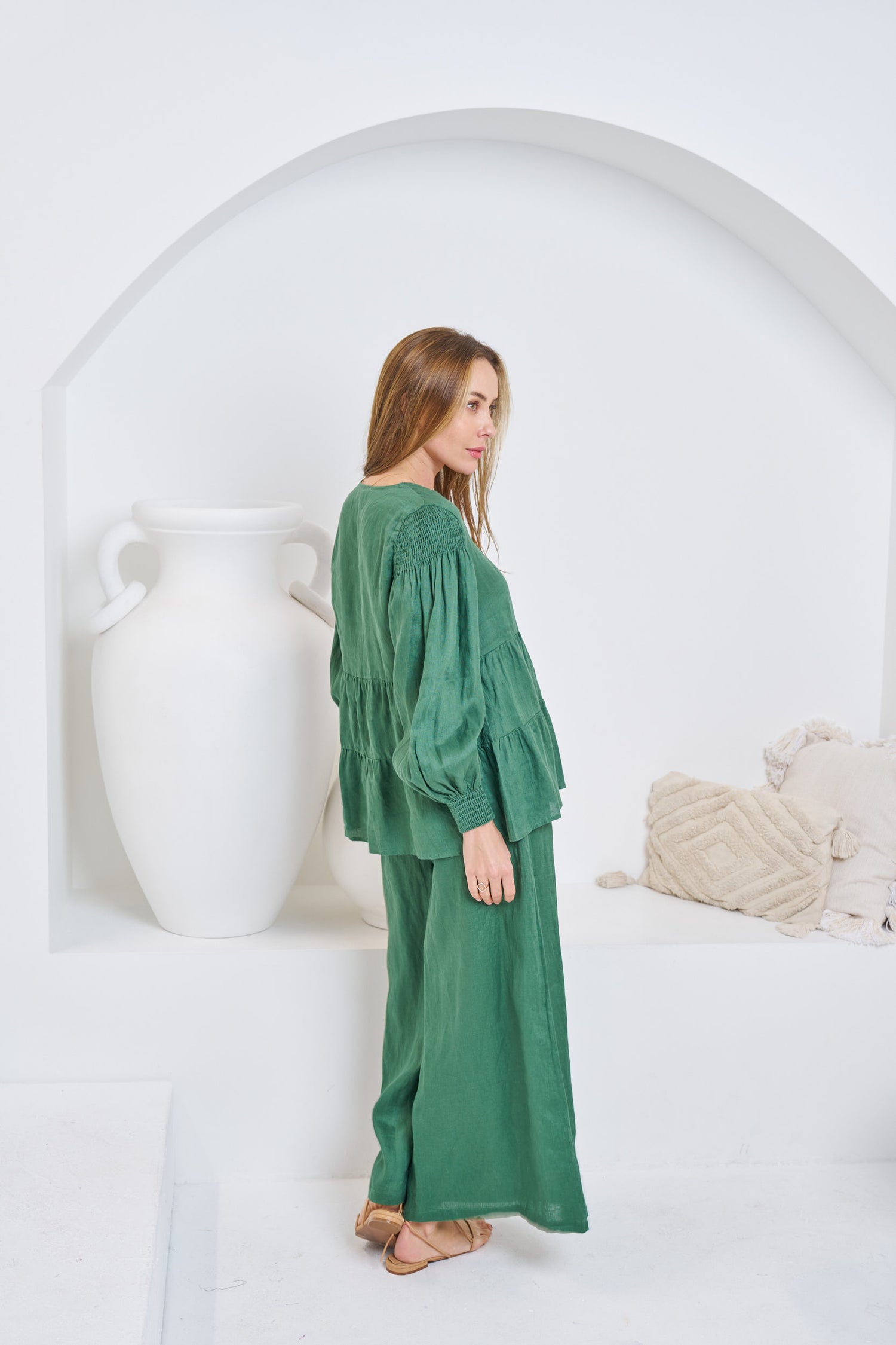 A breezy wide-leg pant designed for warm, easy days. Made from a lightweight linen blend, this style features a relaxed silhouette, a soft elastic waistband and effortless drape for all-day comfort.
