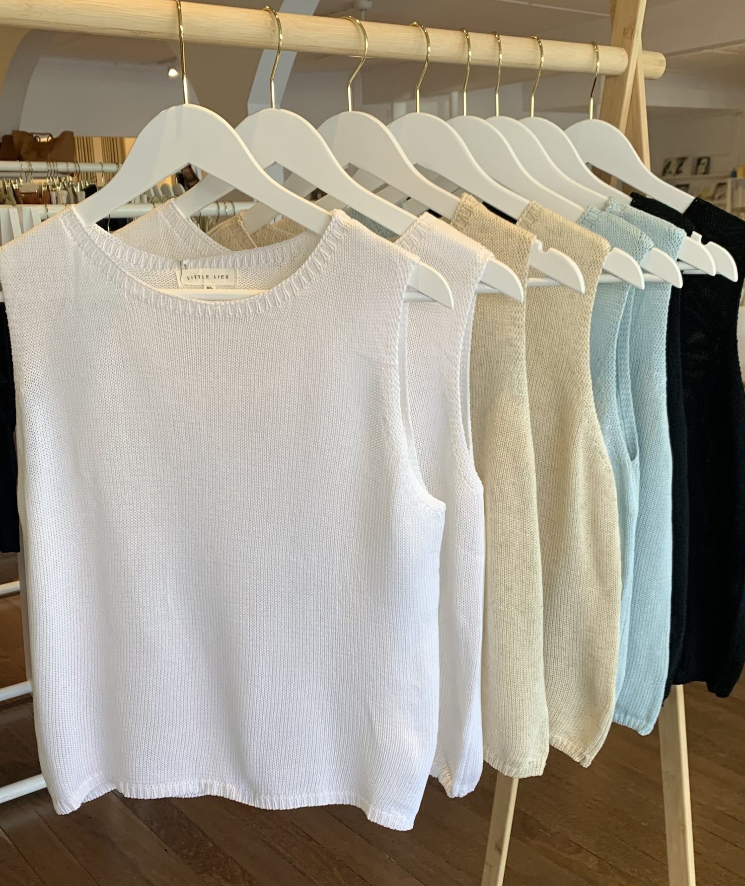 In a lightweight yarn, the Spring Tank has a beautiful tight but open weave detail, clean perfect fit which is so suitable for layering or to wear as is. Simplicity at it’s best!!