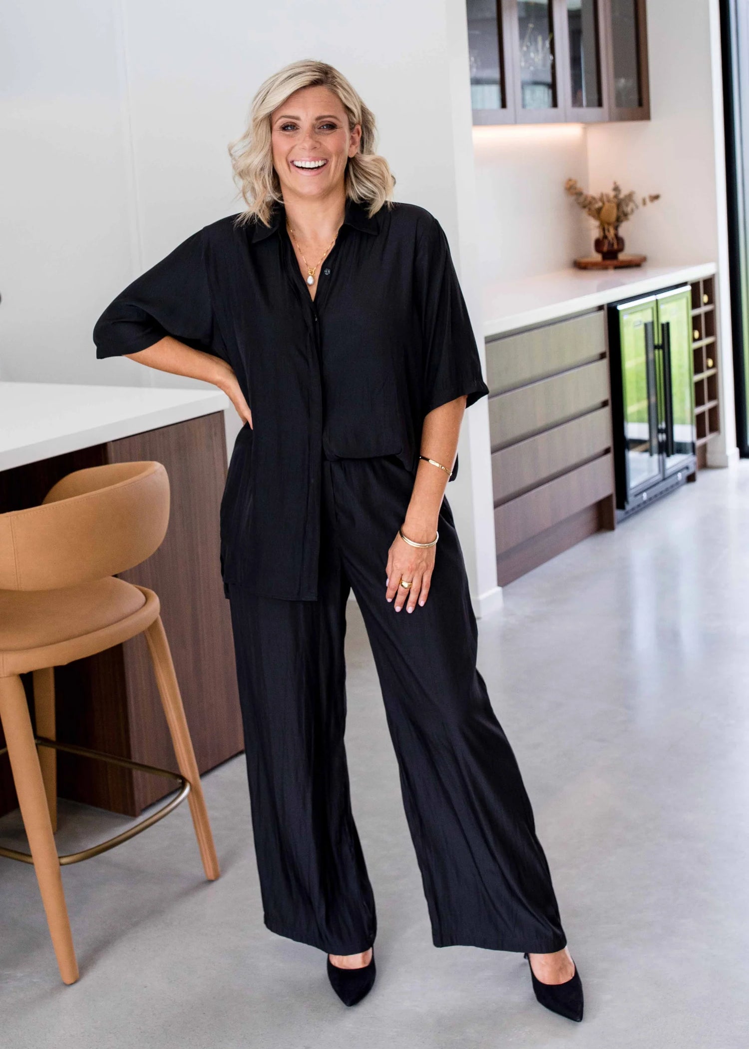 Easy wear - a lovely floaty wide leg pant in our breathable Lustre technical fabric