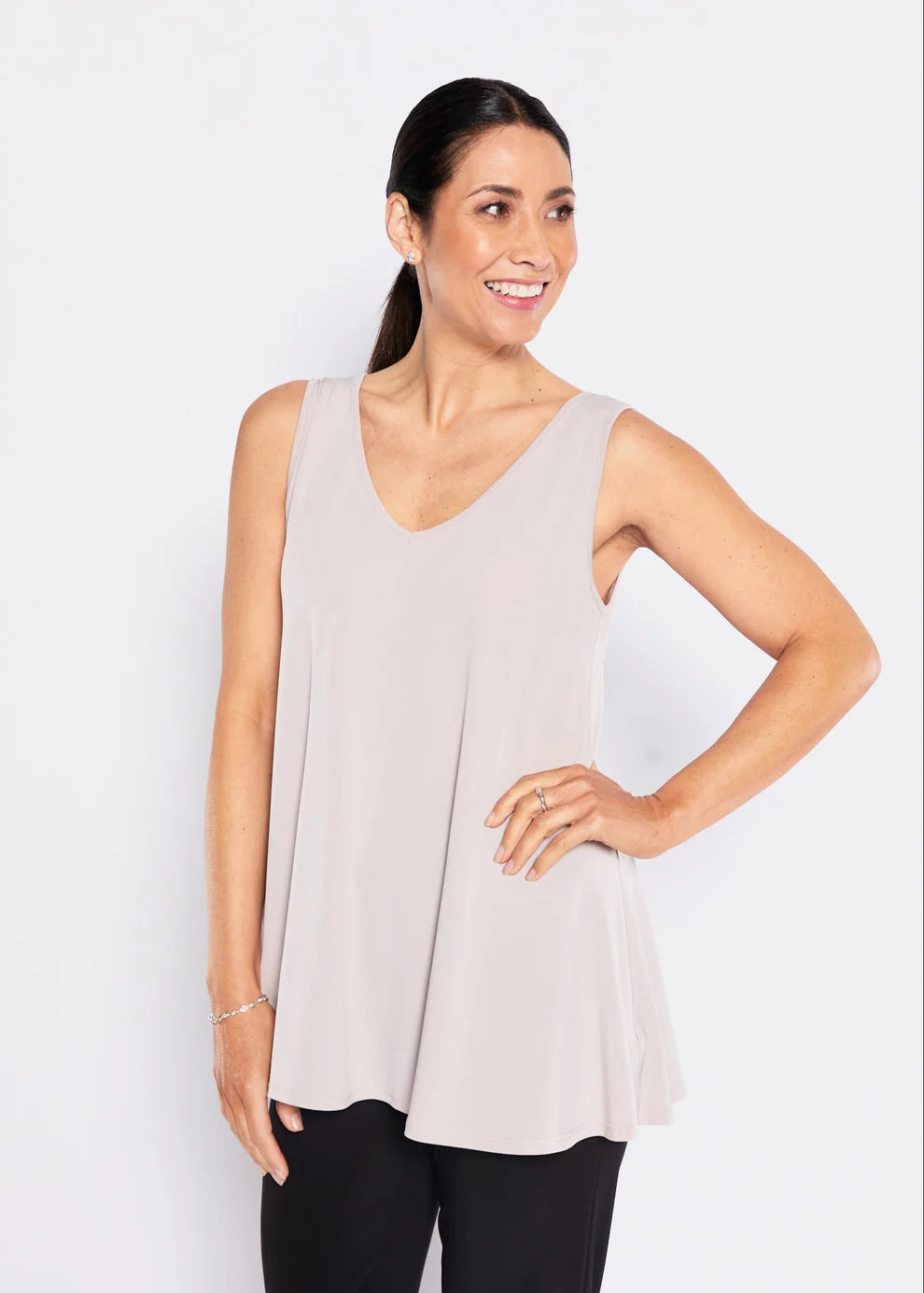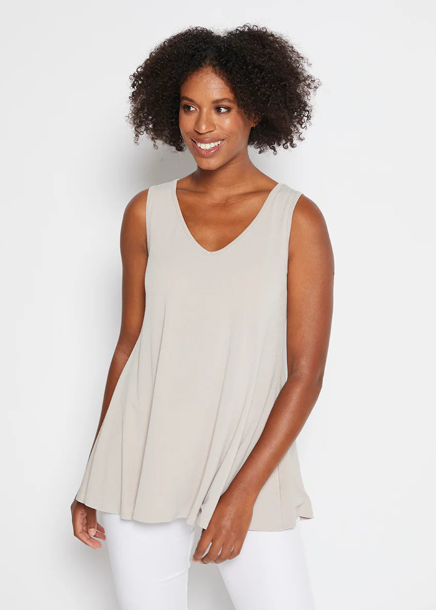 Wear anywhere - whether it's balmy or Baltic, layered or worn alone this reversible scoop or V neckline tank is the ideal piece.